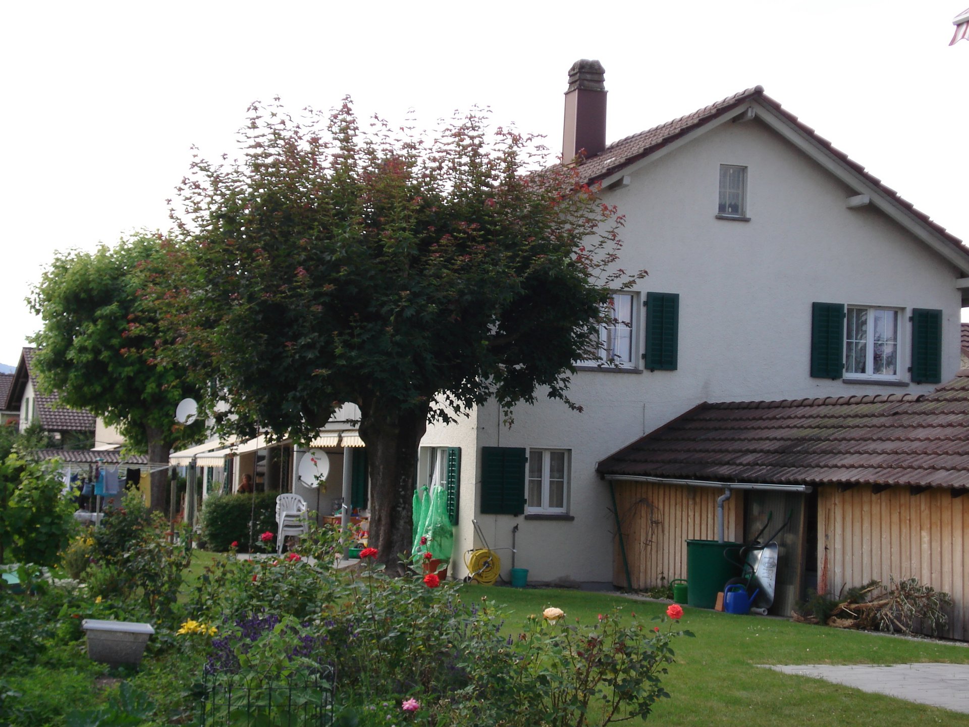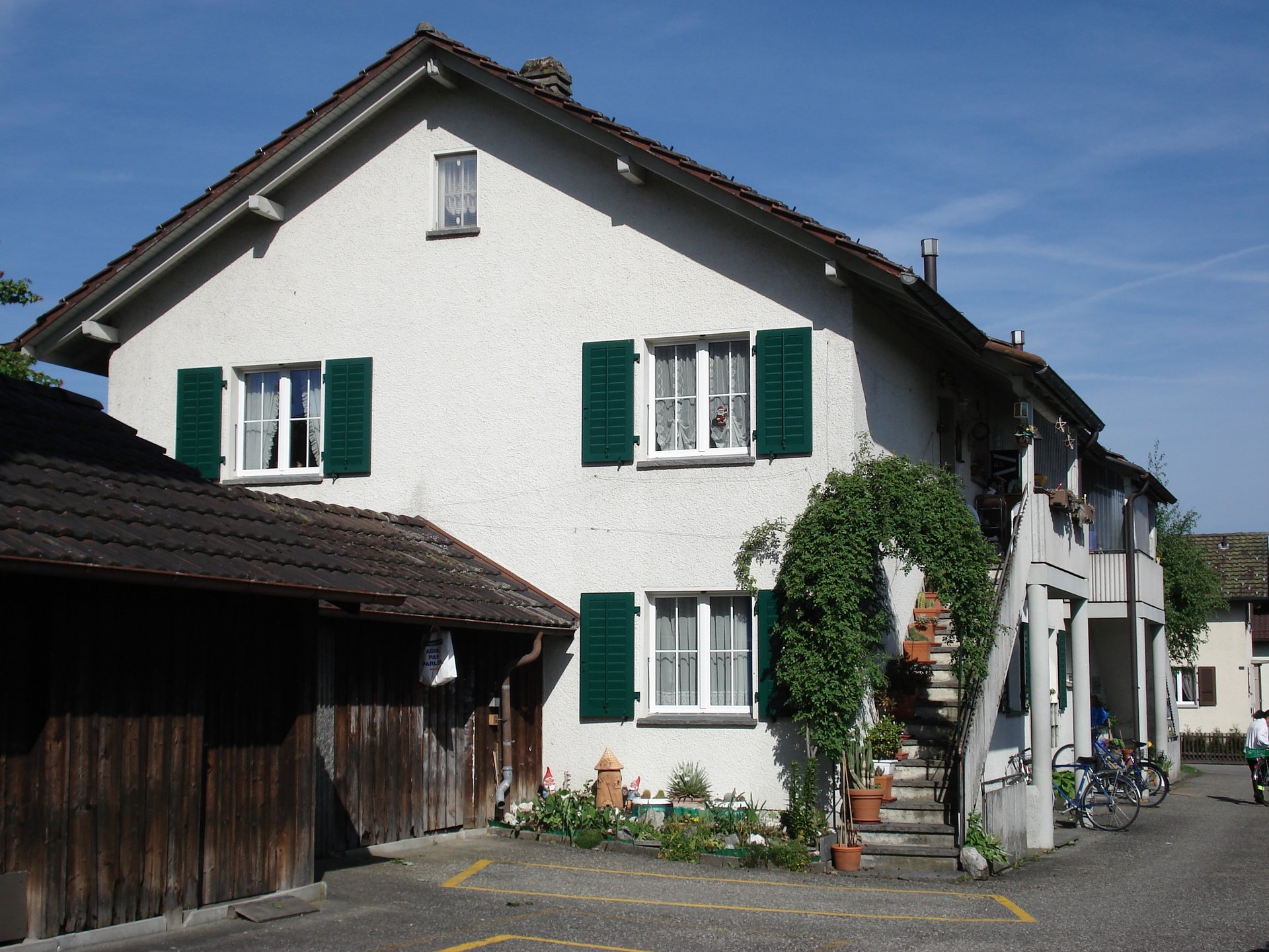 Das 4-Familienhaus wurde 1954 erstellt, es war die 16. Bauetappe unserer Genossenschaft. Die Liegenschaft besteht aus vier 4-Zimmer-Wohnungen. Zu jeder Wohnung gehört ein Geräteschuppen und auf Wunsch kann ein Gemüse- oder Blumengarten bepflanzt werden. Seit 2023 ist das Gebäude über eine Fernleitung an die Pelletheizung der Nachbarliegenschaft angeschlossen.
