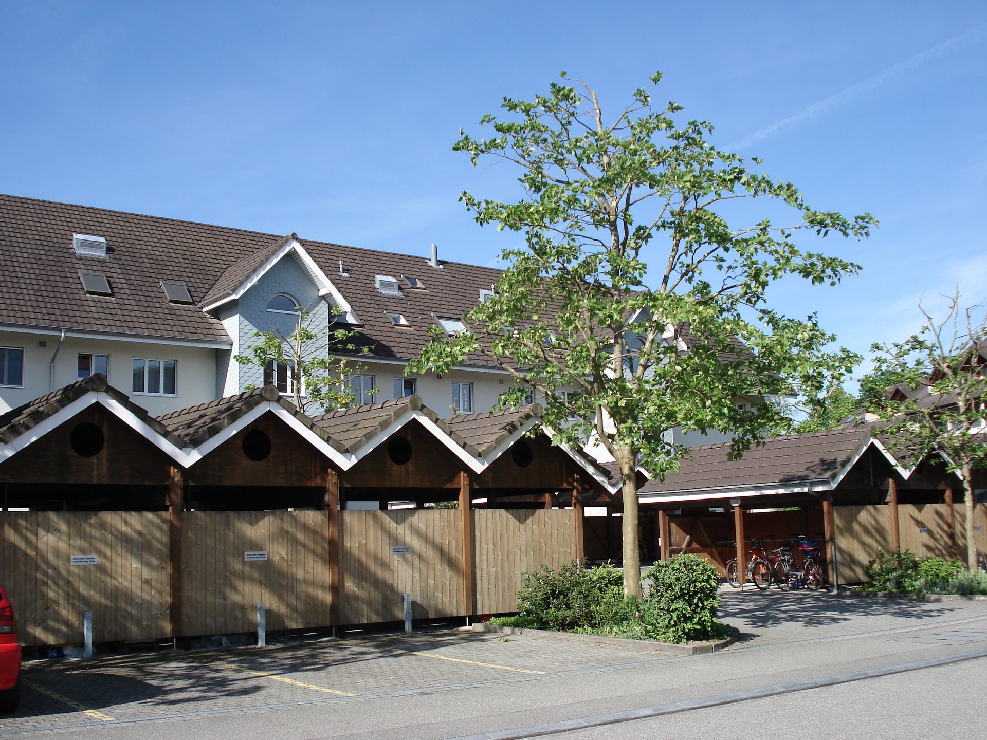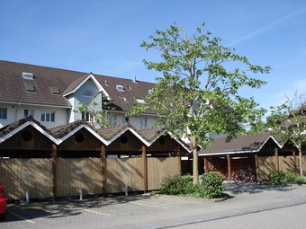 Die Wohnungen sind ideal für Familien mit Kindern. Für Fahrzeuge stehen gedeckte Unterstände zur Verfügung, für Besucher sind Parkplätze vorhanden.