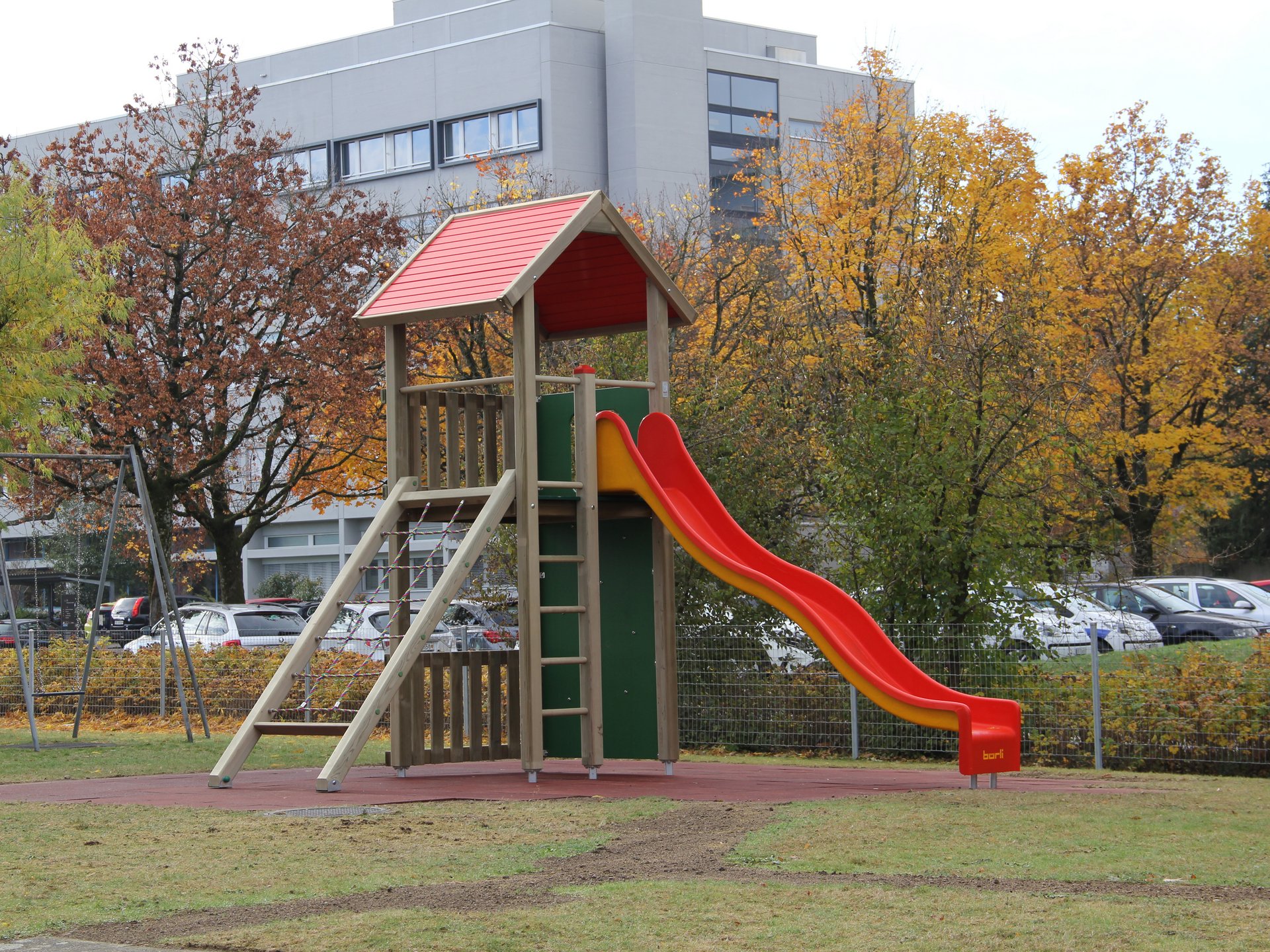 Die Liegenschaft grenzt direkt an die Schul- und Sportzone. Es befinden sich dort Kindergarten, Primarschule, Gymnasium, Gewerbeschule, Kaufmännische Berufsschule und das Sportzentrum Hard. Das nächste Einkaufszentrum ist in fünf Minuten zu Fuss erreichbar, der Bahnhof in 10 Minuten. Die Bushaltestelle für den Ortsbus liegt direkt vor der Haustür. Das Naherholungsgebiet ist in wenigen Gehminuten erreichbar.